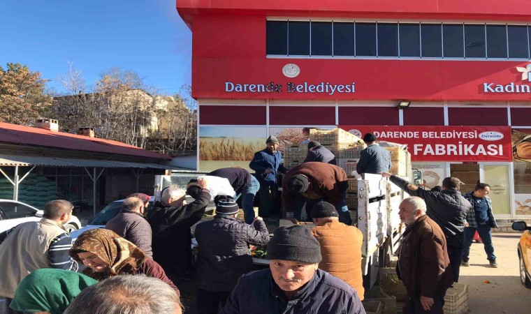 Deprem bölgesi Hatay’ın Erzin ilçesinde yaşayan Darendeli hayırsever Mehmet Ulu’nun desteği ile ilçede yaşayan depremzedelere bir kamyon mandalina dağıtıldı. Darende Belediyesi fırını önünde kısa sürede dağıtımı yapılan mandalinaları alan Darendeli depremzedeler, Ulu’ya yardımları için teşekkür ederken, yardımları kısa sürede tükendi.