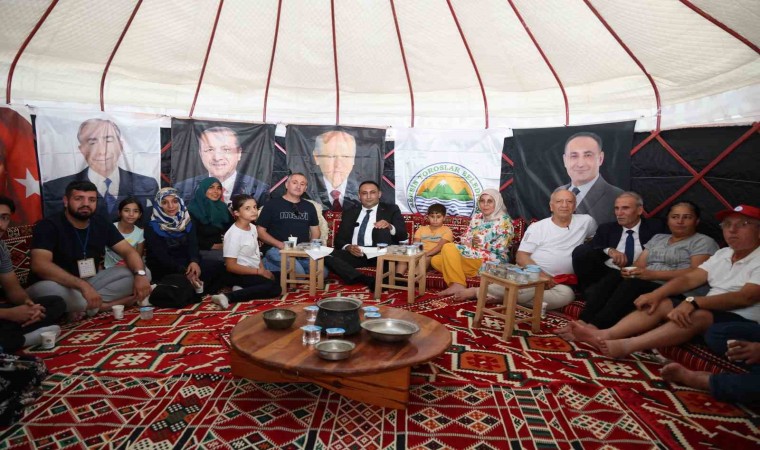Başkan Yılmaz, Mersin’den gelen gençleri ve hemşerilerini de otağ çadırında ağırladı. Otağı ziyaret eden misafirlere Mersin’e özgü cezerye ikramı gerçekleştirildi.