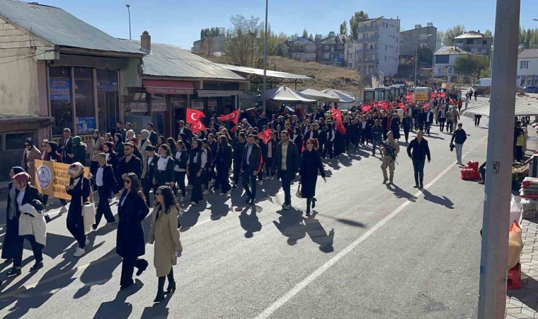 Malazgirt’te protokol üyeleri, öğrenci ve vatandaşlar, Cumhuriyet Bayramı kutlamaları çerçevesinde Binbaşı Arslan Kulaksız Caddesi’nden başlayarak Malazgirt Meydanı’na kadar yürüdü. Saygı duruşu ve İstiklal Marşı’nın okunmasıyla başlayan törende; şiirler okundu, gösteriler sahnelendi. Daha önce düzenlenen yarışmalarda dereceye girenlere ödüllerinin verildiği törene Kaymakam Göksu Bayram, Garnizon Komutanı Personel Binbaşı Gökhan Aydın, kurum amirleri, STK temsilcileri, siyası parti başkanları, öğrenci, öğretmen ve vatandaşlar katıldı.