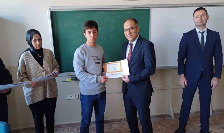Malazgirt Kaymakamı Göksu Bayram, İlçe Milli Eğitim Müdürü Vedat Kaya ve Malazgirt Süphan Anadolu Lisesi Okul Müdürü Tuncay Öğreten yarıyıl tatili nedeniyle düzenlenen karne dağıtım törenlerine katıldı.