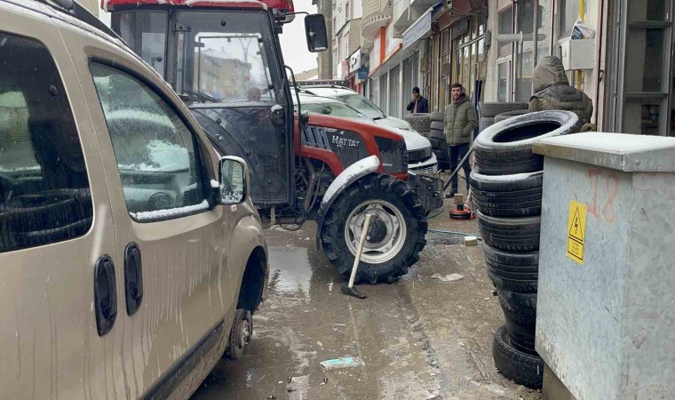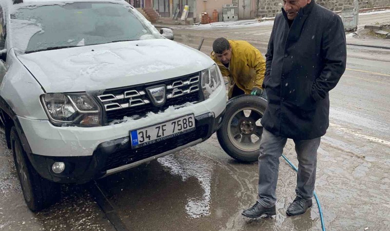 Muş’un Malazgirt ilçesinde aniden etkili olan kar yağışı nedeniyle oto lastikçilerde yoğunluğa neden oldu.