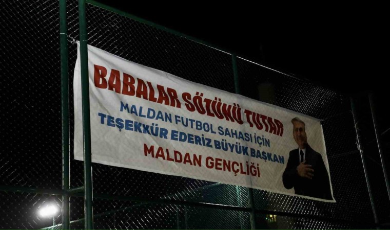 Mahalle sakinleri yapılan hizmetten duyduğu memnuniyeti dile getirerek, “Babalar Sözünü Tutar Yunusemre Maldan Futbol Sahası için teşekkür ederiz Büyük Başkan” yazılı pankartı yeni halı sahaya asarak Başkan Çerçi’ye teşekkür etti.