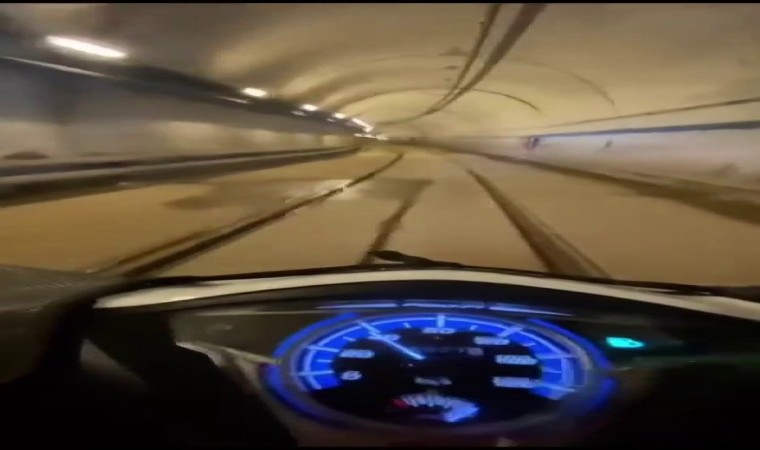 Maltepe Metro istasyonu içerisine sipariş götüren motokurye tünel içerisinde ilerlediği anları cep telefonu ile kayda aldı.