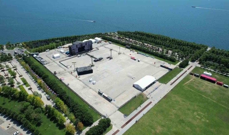 Maltepe etkinlik alanında İstanbul Büyükşehir Belediyesi (İBB) tarafından 29 Mayıs İstanbul’un Fethi kutlamaları öncesi konser alanında hazırlık çalışmaları devam ediyor. Çalışmalar havadan görüntülendi.