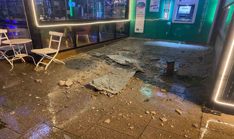 Maltepe’de 5 katlı binanın çatısının bir kısmı çöktü. Çatıdan düşen beton parçaları binanın altındaki dükkanlara zarar verirken apartman sakinleri binayı boşalttı