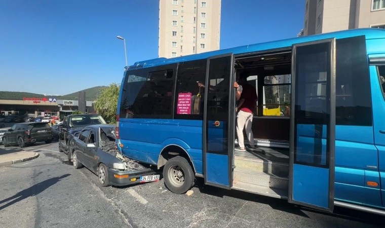 Maltepe’de yolcu almak için bekleyen minibüsün, arkasında duran otomobile seyir halindeki bir başka araç çarptı. Çarpmanın şiddetiyle otomobil minibüsün altına girdi. Kaza sonrası asılı kalan minibüsü kurtarmak için çevredeki öğrenciler seferber oldu.
