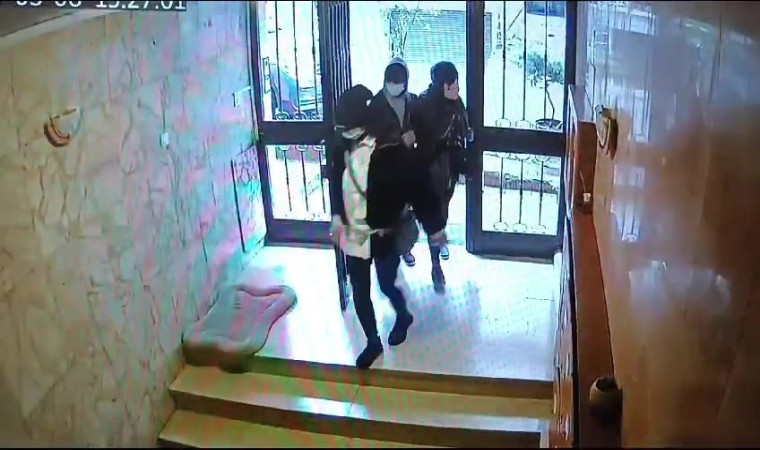Öte yandan, şüphelilerin apartmana giriş ve çıkış anları güvenlik kamerasına yansıdı. Görüntülerde, 3 kadının maskeli ve şapkalı şekilde apartmanın kapısına geldikleri, kapıyı açarak içeri girdikleri, yaklaşık 1 saat sonra binadan ayrıldıkları yer alıyor.