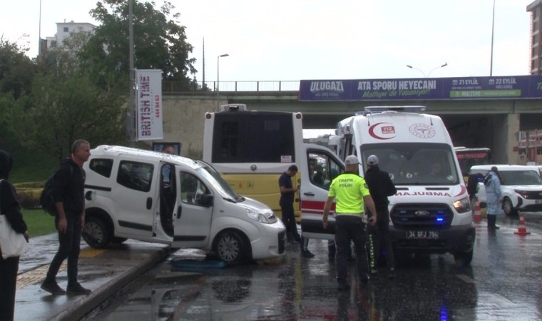 Maltepe D-100 Karayolu’nda yağış nedeniyle kayganlaşan yolda duramayan İETT otobüsü bir otomobile ve minibüse çarptı. Kazada İETT otobüsünün içinde yolcu olarak bulunan 4 kişi yaralandı.