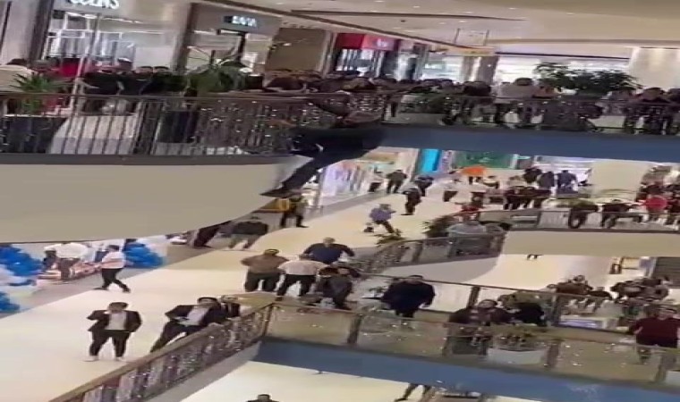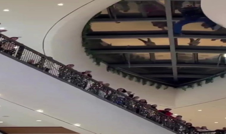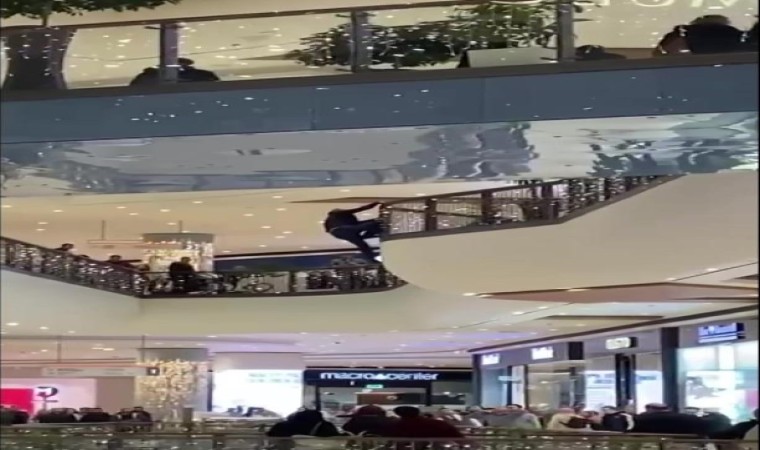 Öte yandan, şahsın AVM’nin 3’üncü katından atladığı anlar cep telefonu kamerasına yansıdı.
