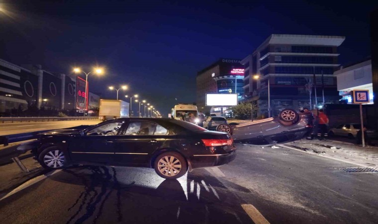 Maltepe D100 Karayolu üzerinde seyir halindeki iki araç çarpıştı. Kazaya karışan araçlardan biri takla attı. Otomobiller kullanılamaz hale gelirken, takla atan araçtaki sürücü ise yaralandı.
