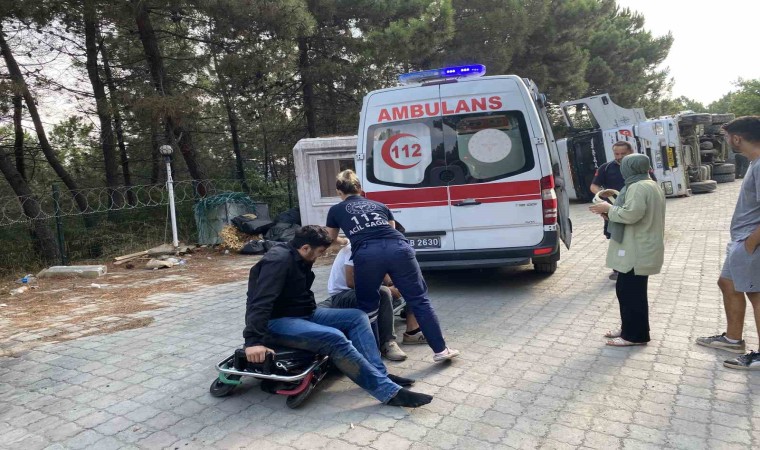 Olayı gören Mehmet Yıldırım, “Mesire alanında çalışma sırasında kamyonun arka tekerlekleri dengeli olmayınca yan yattı. 2 kişi içerisindeydi. Sağlık durumları çok iyi, bir şeyleri yok” diye konuştu.