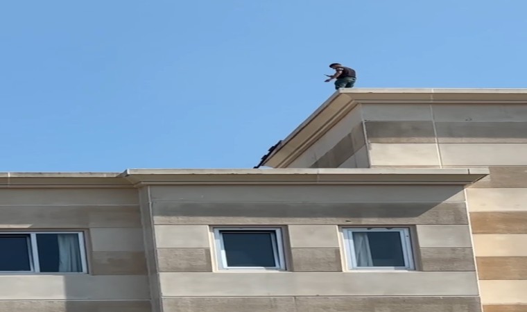 Maltepe’de bir öğrenci yurdunun çatısına çıkan genç tehlikeli hareketlerde bulunurken yanındaki arkadaşı ise o anları cep telefonu ile kayda aldı.