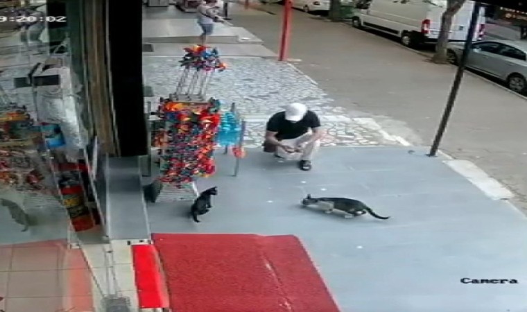 İstanbul Maltepe’de cadde yürüyen bir şahıs sevme bahanesiyle yanına çağırdığı kediyi çalarak kayıplara karıştı. O anlar iş yerinin güvenlik kamerasına saniye saniye yansıdı.