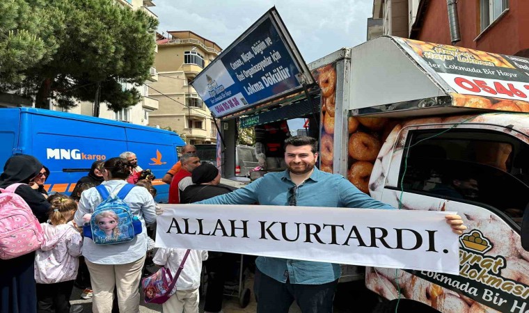 Maltepe’de sevgilisi tarafından terk edilen Kadir Sarıca isimli vatandaş, “Allah kurtardı” pankartıyla lokma döktürerek dağıttı. Sevgilisinin kendisini 350 bin TL dolandırdığını öne süren Sarıca, "Kendisinden kurtulduğum için hayır lokması dağıtıyorum" dedi.