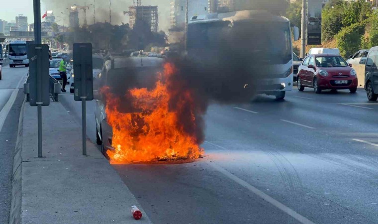 Maltepe D-100 Karayolu’nda ticari araç, motor kısmında çıkan yangından dolayı alev alev yandı. Yanan araç itfaiye ekipleri tarafından söndürüldü. Yangın sebebiyle otoyolda uzun araç trafikleri oluştu.