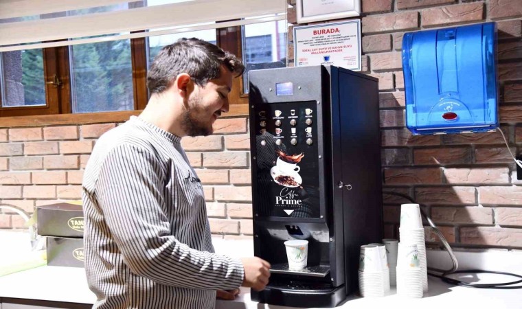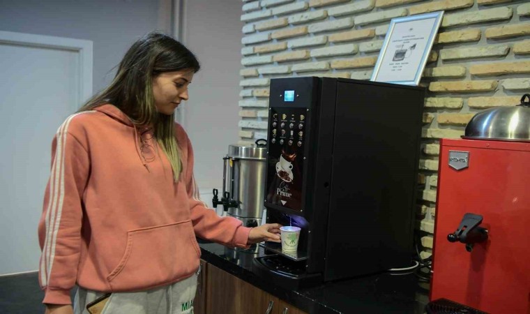 Mamak Belediyesi uyanık kütüphanelerine ders çalışmaya sıcak bir mola vermek isteyen öğrenciler, soluğu kahve makinesinin önünde alıyor. Kahve içerek enerji depolayan gençler böylece ders çalışmaya daha zinde devam ediyor.