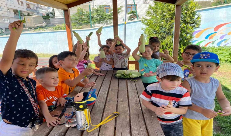 Mamak’ta eğitim dönemi dışında yaz okulları ile de eğitim veren anaokullarının bahçelerinde oluşturulan bostan ve kümeslerde, sebze yetiştirip hayvan besleyen minikler, bitki ve sebzelerin büyüme aşamalarına tanık oluyor, yumurtanın nereden geldiğini öğreniyor.