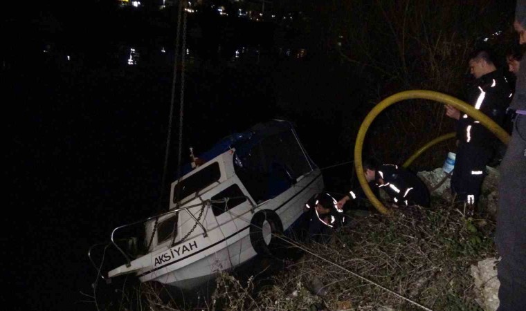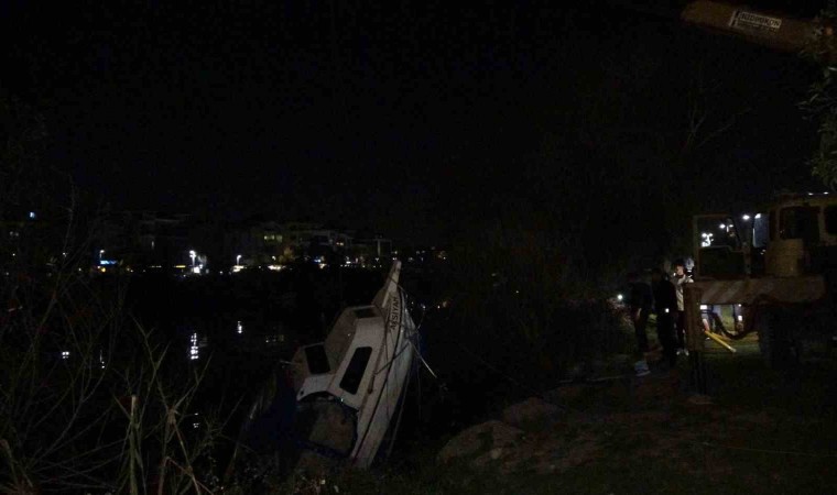 Antalya’da Manavgat Irmağı’nda batan tekne, itfaiye ekiplerinin yardımıyla çıkartıldı.