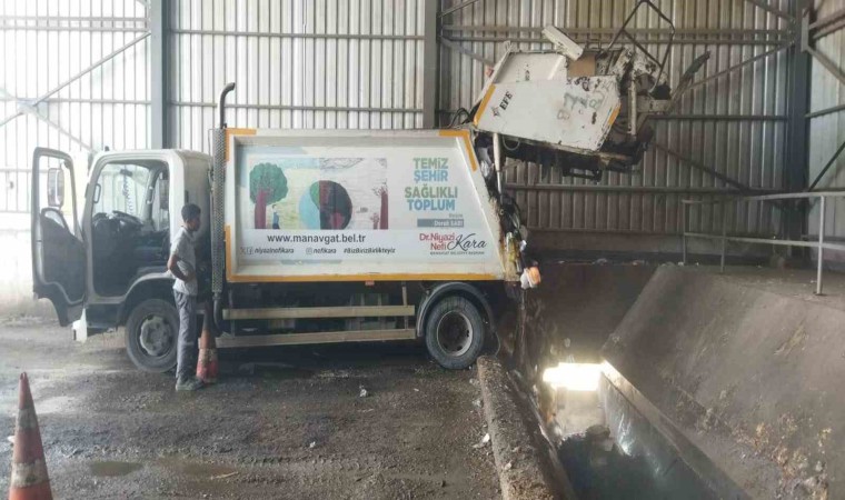Antalya Büyükşehir Belediyesi, Manavgat’ta katı atıkların transferine tam kapasite devam ediyor. İlçe belediyesinin kamyonlarıyla toplanan çöpler Büyükşehir Belediyesi tarafından inşa edilen Manavgat Katı Atık Transfer İstasyonu’na getiriliyor. Buradan Antalya Büyükşehir Belediyesi tarafından tırlarla Kızıldağ Mahallesi Göğü mevkiinde bulunan Katı Atık Katı Atık Düzenli Depolama ve Enerji Üretim Tesisi’ne sevk ediliyor. Böylelikle çöpler bertaraf edilerek geri dönüşüme kazandırılıyor.
