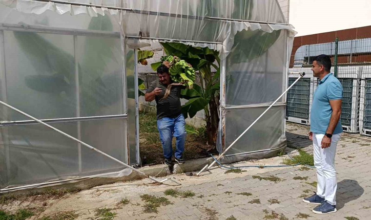 Antalya’da Gençlik Merkezi bünyesinde oluşturulan hobi bahçesinde muz ve zeytinin hasadı yapılırken, 35 kiloyu geçen muz dalı herkesin dikkatini çekti.