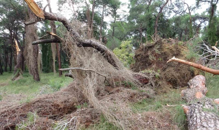 Devrilen ağaç hakkında bilgi veren görevli, “Bu ağaç en az 150 yaşında. Görüldüğü gibi kökünün söküldüğü yerde 3 metrekare genişliğinde büyük bir çukur oluşmuş durumda” diye konuştu.