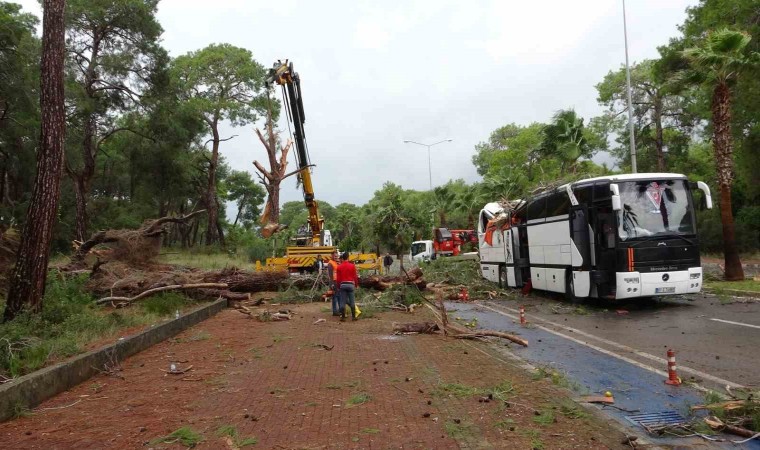 Sabah saat 07.30 sıralarında Manavgat’tan aldığı otel çalışanlarını Titreyengöl’de bulunan otele götürdüğünü belirten servis otobüsü sürücüsü Soner Sümer, “Titreyengöl Caddesi’nde 150 metre gittiğimde önüme bir ağaç düştü ve yolu kapattı. Aracı durdurup ineceğim sırada camın önünden büyük bir uğultuyla toz bulutu ve ağaç dalları geçti. Tam bu sırada büyük bir gürültü ve ağaç otobüsün üzerine devrildi. İçeridekiler büyük panik yaşadı. Yaralanan 6 arkadaşımız hastaneye kaldırıldı. 4 tanesi ayakta tedavi görerek taburcu edilirken, 2 arkadaşımız ameliyata alındı” dedi.
