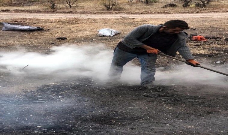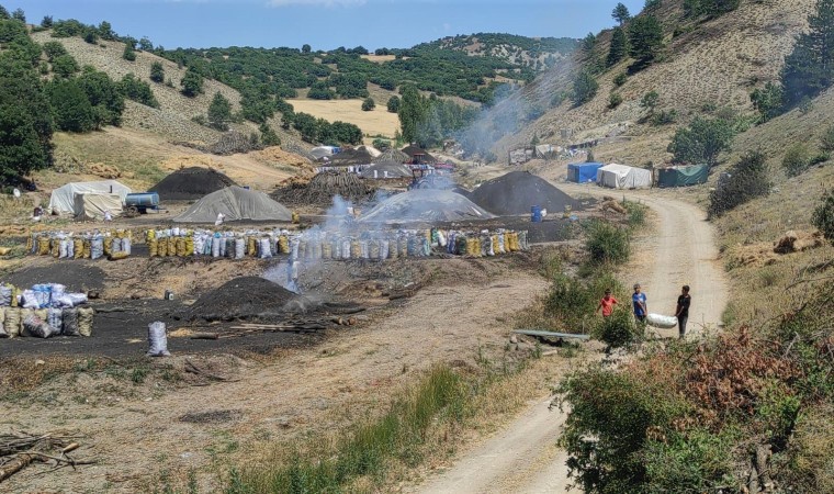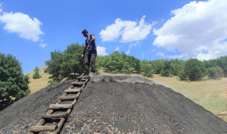 Yozgat’ın Sorgun ilçesinde geçimini mangal kömürü üreterek sağlayan işçiler, sıcak hava ve yakılan kömürün yaydığı ısıya rağmen ekmek parası kazanmak için alın teri döküyor.
