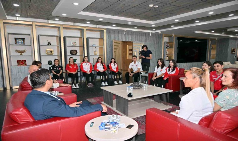 Manisa Cimnastik İl Temsilcisi Fatma Tuğba Didin, antrenörler ve milli takım sporcuları, Manisa Büyükşehir Belediye Başkanı Mimar Ferdi Zeyrek’e konuk oldu. Başkan Zeyrek, “Biz şu anda Manisa Büyükşehir Belediyespor bünyesinde yaklaşık 12 bin evladımıza kucak açıyoruz. Hem kişisel gelişim anlamında hem de şehre verdiği destekten dolayı hepsine teşekkür ediyorum” dedi.