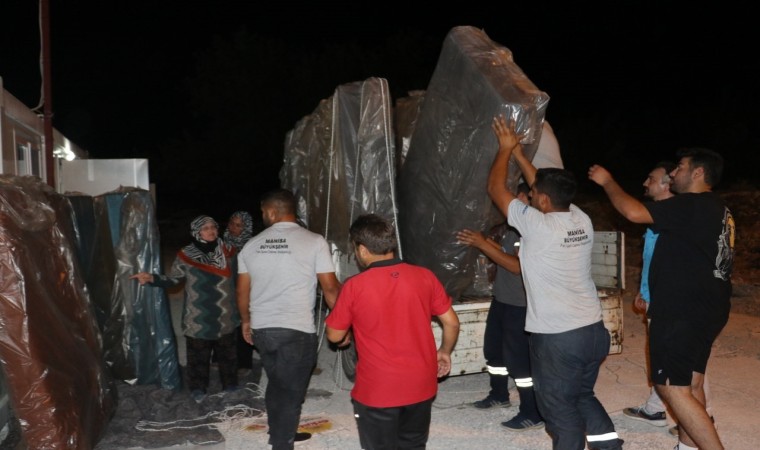 Manisa’da yaşanan orman yangınından en çok etkilenen mahallelerden olan Sarısığırlı Mahallesi’nde yangından etkilenen vatandaşların ilk andan itibaren yanında olan Manisa Büyükşehir Belediyesi, evleri yanan vatandaşlara AFAD Başkanlığınca gönderilen konteynerlere eşya desteğinde bulundu.