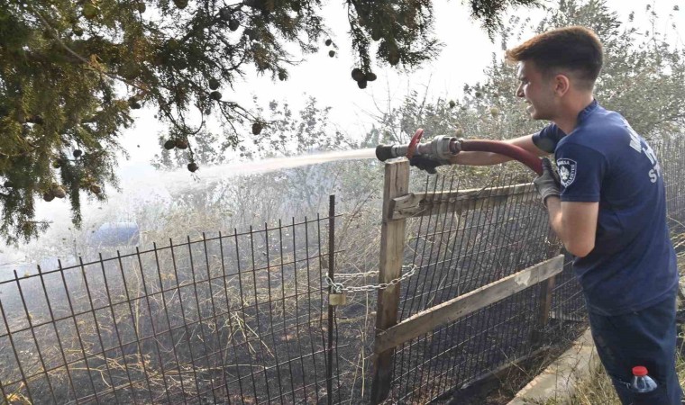 İzmir’in Bornova ilçesi Sabuncubeli mevkiinde çıkan yangına desteğe giden Manisa Büyükşehir Belediyesi İtfaiye Dairesi Başkanlığı ekipleri Sarnıç Mahallesi’ndeki evleri yangından kurtarmak için büyük çaba harcadı.