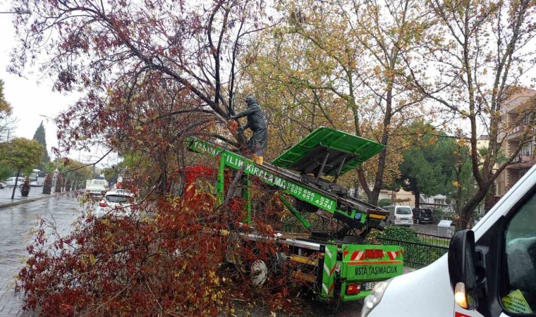 Manisa Büyükşehir Belediyesi ve Manisa Su ve Kanalizasyon İdaresi (MASKİ) Genel Müdürlüğü ekipleri, Meteoroloji Genel Müdürlüğü tarafından Manisa merkez ve ilçeleri için verilen gök gürültülü sağanak yağış uyarısıyla birlikte teyakkuza geçti. Ekipler öğle saatlerinde başlayan fırtına ve sağanak yağış nedeniyle vatandaşların mağduriyet yaşamamaları adına yoğun mesai harcadı. Manisa Büyükşehir Belediyesi İtfaiye Dairesi Başkanlığı, merkez ve Turgutlu ilçesinde işyeri bacası devrilmesi, çatı uçması, duvar çökmesi gibi yaşanan olumsuzluklara hızlı bir şekilde müdahalede bulundu. Kent Estetiği Dairesi Başkanlığı ekipleri, merkez ve ilçelerde devrilen ağaçları kaldırırken, dalları kırılan ağaçlara da budama işlemi yaparak güvenli hale getirdi. MASKİ Genel Müdürlüğü Kanalizasyon Dairesi Başkanlığı ekipleri ise merkez ve ilçelerde şiddetli yağış sırasında ve sonrasında bazı bölgelerde yaşanan su baskınlarına müdahalede bulundu. Yağışla birlikte yağmur suyu ızgaralarına dolan ağaç yaprakları ve malzemeleri temizlendi. MASKİ ekipleri Kanalizasyon hatlarının temizliğini de yaparak su akışını sağlıklı hale getirdi. Manisa Büyükşehir Belediyesi ve MASKİ Genel Müdürlüğü ekipleri merkez ve ilçelerde 24 saat esası ile sahadaki çalışmalarına devam edecek.