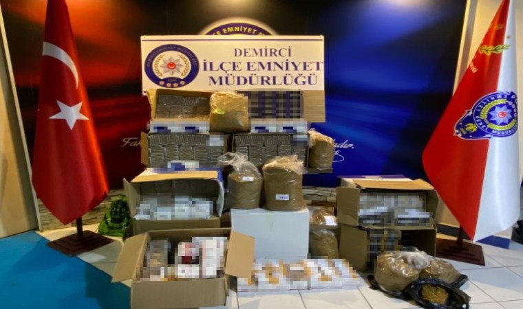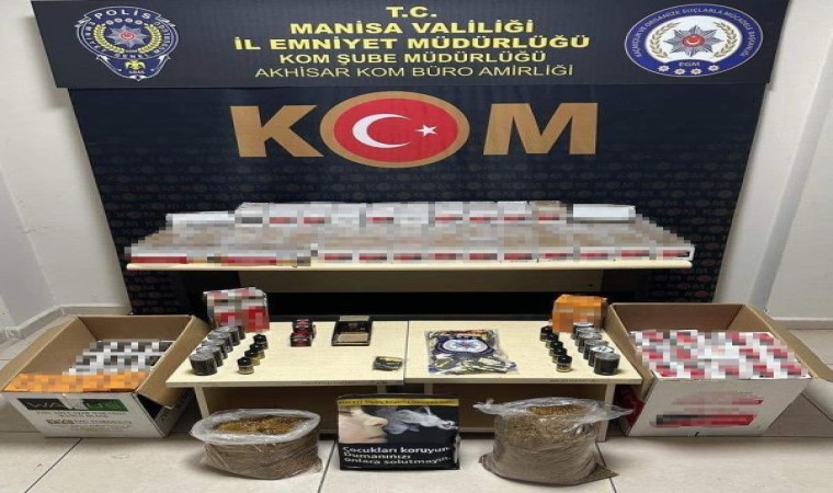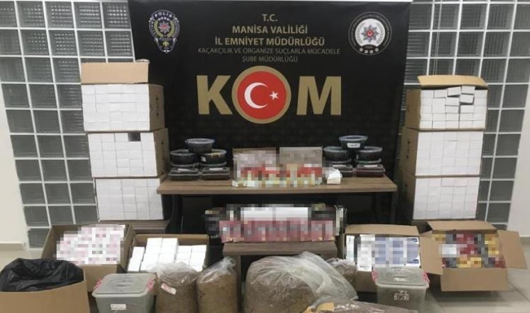 Manisa İl Emniyet Müdürlüğü ekipleri tarafından tütün mamulleri kaçakçılığına yönelik ülke geneliyle eş zamanlı yapılan operasyonda binlerce adet makaron ve kilolarca tütün ele geçirildi.