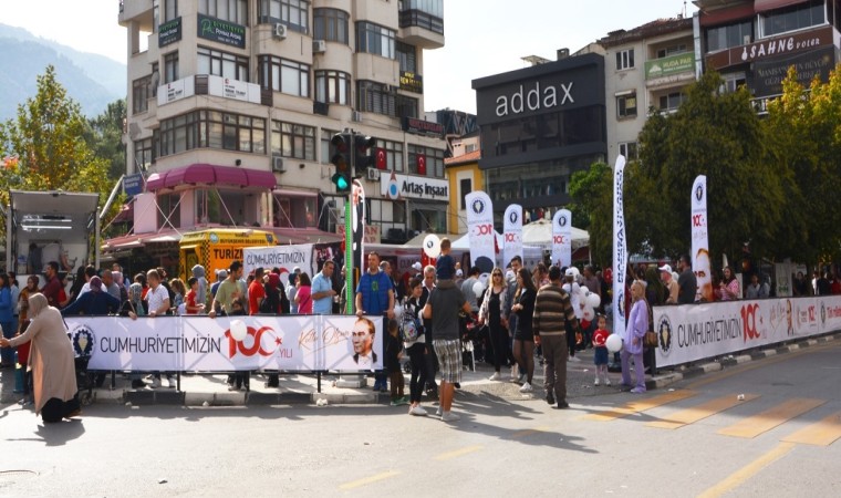 Manisa TSO, Türkiye Cumhuriyet’inin 100. yılını coşkuyla kutladı. Manisa TSO tarafından 15 Temmuz Demokrasi Meydanı’nı afişlerle donattı, stant açılırken kutlamalara katılan vatandaşlara Türk Bayrağı dağıtıldı. Ayrıca tören bittikten sonra Manolya Meydanı karşısındaki alanda 10’ar bin adet Türk Bayrağı, şapka, 10 bin paket kuru üzüm, şıra dağıttı. Ulu Önder Gazi Mustafa Kemal Atatürk, silah arkadaşları ve aziz şehitler anısına lokma hayrı gerçekleşti. Yunusemre Belediye Başkanı Dr. Mehmet Çerçi de standı ziyaret etti. Manisa Ticaret ve Sanayi Odası Yönetim Kurulu Başkanı Mehmet Yılmaz, “Cumhuriyet bir meydan okumadır. Başarı öyküsüdür. Bütün dünyanın karşısında dimdik durmadır. Ulu Önder Gazi Mustafa Kemal Atatürk önderliğinde bir milletin küllerinden yeniden doğuşudur. Unutmayalım ki; Cumhuriyet 100 yıldır yolumuzu aydınlatan bir ışıktır. Ulu Önder Gazi Mustafa Kemal Atatürk ve Silah arkadaşlarının önderliğinde, milletimizin ortak iradesiyle hep beraber el ele gerçekleştirdiği kurtuluş mücadelesinin son noktası olan Cumhuriyet, bugün bizlere her zamankinden daha fazla güç ve azim vermektedir. Bizler bugün özgür ve çağdaş medeniyet seviyesine ulaşmak için mücadeleyi hiç bırakmamış bir milletin ‘Cumhur’ olarak yeniden doğuşunun 100. yılını kutluyoruz. Kurtuluş Savaşı askeri ve siyasi zaferlerle sonuçlanmış ve cumhuriyetle taçlanmış bir mücadeledir. 29 Ekim, inançlı ve kararlı bir ulusun, tam bağımsızlık mücadelesinin örnek bir ürünüdür. Egemenlik kayıtsız şartsız milletindir ilkesini, ekonomik zaferlerle taçlandırarak yarınlara taşıma azmi ve inancıyla yorulmadan yarınların büyük Türkiye’si için çalışmaya devam ediyoruz. Milletçe el birliği ve gönül birliğiyle çalışmayı sürdürürsek çok daha güçlü ve çok daha müreffeh bir ülke haline gelmemizin önünde hiçbir engel yoktur. Dün olduğu gibi bugün de iyi ve kötü günde bir arada olan milletimiz aştığı tüm zorluklarla ve karşısına çıkan engellerle yaptığı mücadelesiyle yarınlara emin ve kararlı adımlarla yürümeye devam etmektedir. Bu tarihi günde Cumhuriyetimizin Kurucusu Ulu Önder Gazi Mustafa Kemal Atatürk’ü, bu toprakları kanlarıyla sulayarak bizlere vatan yapan aziz şehitlerimizi ve kahraman gazilerimizi saygı ve minnetle anıyor; 100’üncü yılında yüce Milletimizin ve Manisalıların 29 Ekim Cumhuriyet Bayramı’nı kutluyorum” dedi.
