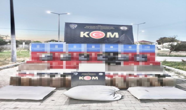 Manisa’nın Akhisar ilçesinde depo olarak kullanılan bir eve yapılan baskında 1 ton 10 kilogram bandrolsüz kıyılmış tütün ile yüz binlerce makaron ele geçirildi.