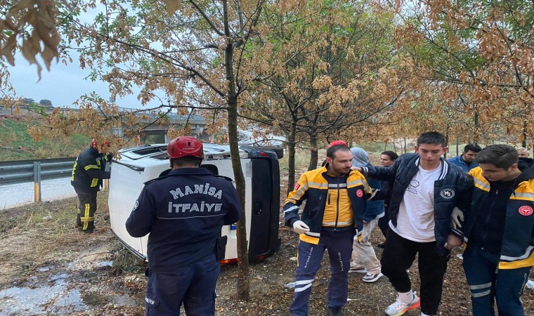 Manisa’nın Kula ilçesinde yağışlı havanın da etkisiyle kayganlaşan yolda kontrolden çıkarak bariyerlere çarpan hafif ticari araç yan yattı. Kazada 1 kişi yaralandı.