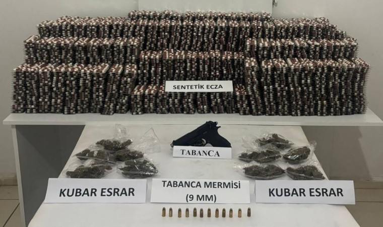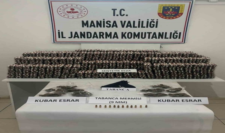 Manisa İl Jandarma Komutanlığı JASAT, Yunusemre İlçe Jandarma Komutanlığı ekipleri ile narkotik köpeğinin desteğiyle F.B. (21/E), M.D. (30/E) ve H.K. (30/E) isimli şahısların ikametlerinde yapılan aramada; 54 bin 860 adet sentetik ecza, 276 gram kubar esrar, 1 adet tabanca, 12 adet 9 mm çapında fişek ele geçirildi. 3 şüphelinin gözaltına alındığı ve haklarında adli tahkikat başlatıldığı bildirildi.