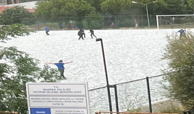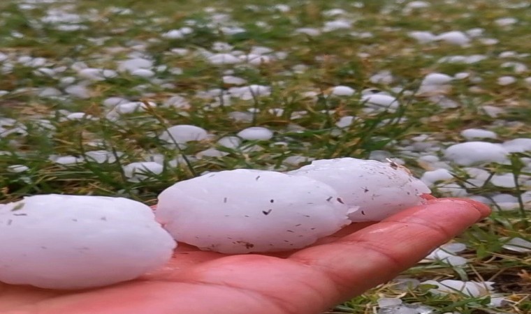 Dolu yağışı ile halı sahalar beyaza bürünürken, bazı araçların camları da doludan dolayı hasar aldı.