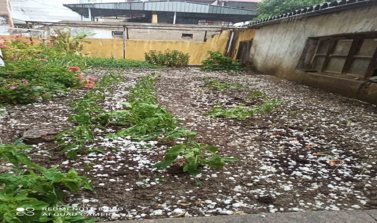 Dolu yağışına yolda ve araçlarında yakalanan vatandaşlar panik yaşarken, ilçedeki Pazar yerlerinin çatıları, iş yerlerine ait gölgeliklerde doludan zarar gördü.