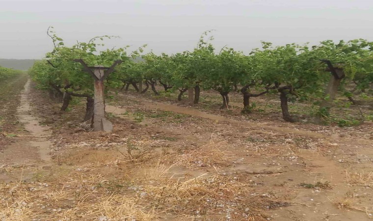 Manisa’nın Salihli ilçesinde yaklaşık 10 dakika boyunca yağan ceviz büyüklüğündeki dolu nedeniyle tarım arazilerinde zarar meydana geldi.