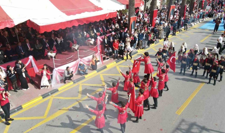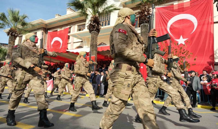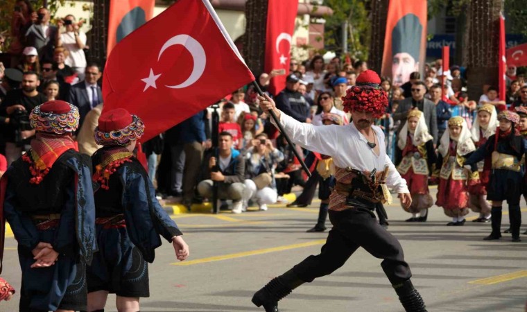 Manisa’da 29 Ekim Cumhuriyet Bayramı’nın 100. yılı kutlamaları renkli görüntülere sahne oldu. Coşkuyla kutlanan Cumhuriyetin 100. yılında jandarma komandoların tüfekli gösterisi büyük alkış aldı.
