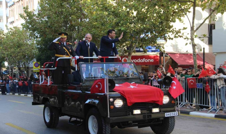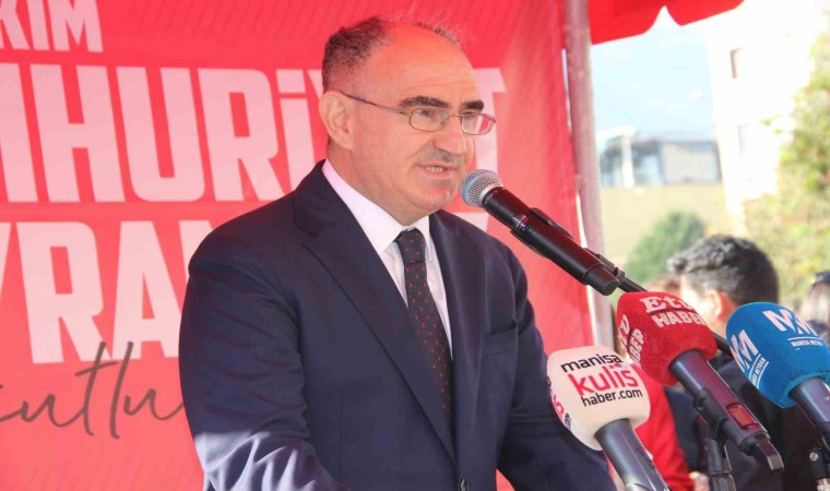 Manisa Valisi Vahdettin Özkan, Manisa Büyükşehir Belediye Başkanı Ferdi Zeyrek ve Garnizon Komutanı Ege Ordu Komutanlığı İdari Kurmay Yarbaşkanı Tuğgeneral Mehmet Can Tepedelen araç üzerinden törene katılanların bayramını kutlamasıyla başlayan tören saygı duruşunda bulunulması ve İstiklal Marşı’nın okunmasıyla devam etti. Törende bir konuşma yapan Manisa Valisi Vahdettin Özkan şunları söyledi: “Gazi Mustafa Kemal Atatürk’ün önderliğinde Aziz Milletimizin Kurtuluş Savaşı’nı kazanarak, zaferini Cumhuriyet ile taçlandırdığı günün 101. yıl dönümünü gurur ve coşkusuyla kutluyoruz. 101. yıl dönümüne şahitlik ettiğimiz Cumhuriyet; milletimizin olağanüstü fedakârlığı ile İstiklalimize göz diken emperyalistlere karşı kahramanca bir direniştir. Cumhuriyet; bağımsızlık aşkı uğruna atan yüreğimizdir. Cumhuriyet; faziletin, halk iradesinin, hukuk güvenliğinin, medeniyetin tecellisidir. Cumhuriyet; yurdun dört bir yanını saran işgal ateşi karşısında her daim ümitvâr olan Türk Milletinin ruhundan doğmuş bir şaheserdir. Cumhuriyet; tehlikede olan vatanın bütünlüğünü ve milletin bağımsızlığını yine milletin azim ve kararlılığı ile kurtaracağı iradedir. Cumhuriyet; Türk Milletinin hiçbir esareti kabul edemeyeceğini, geçmişte olduğu gibi gelecekte de tam bağımsızlığın dışında asla bir seçenek tanımayacağını zihinlere nakşetmiştir. Cumhuriyet, geleceğimizin sağlam temeller üzerine inşa edildiğinin müjdecisidir ve bu müjde, sadece Türkiye için değil, mazlum insanlığa da emsal olmuş büyük bir hamledir; tarihi bir dönüm noktasıdır. Bugün; alnımız açık, başımız dik, hak davamızı savunuyorsak, mazlum milletlerin sesi olan bir devletimiz varsa; Cumhuriyetimizi kuran milli ruh ve milli şuur sayesindedir. Bu milli ruh ve şuura layık olmaksa, ancak bu güzel ülkeyi muasır medeniyetin üstüne çıkarmakla mümkündür. Türk Milletinin mevcudiyetini muhafaza esasıyla donanmış Cumhuriyet’in yaşaması ve yaşatılması; her vatan evladının bireysel, ahlaki ve milli görevidir, sorumluluğudur. Bu görevi icra için ihtiyaç duyulacak asıl kuvvet, milli birlik ve kardeşlik bağımıza, empati kültürümüze dayanmaktadır. Unutulmamalıdır ki milli birlik ve kardeşlik bağlarımızın kuvveti, Cumhuriyetimizin kuvvetidir. Bu bağlar, geçmişten gelen birikimimizle geleceğe sağlam adımlarla yürümemizi sağlayacaktır. Türk Milleti olarak bizler, her bir ferdiyle büyük bir aileyiz. Biz, farklılıklarımızı zenginlik olarak gören, her bir ferdi kendi özünde eşit ve değerli kabul eden bir medeniyetin vârisleriyiz. Bu sebeple, Cumhuriyetimize sahip çıkmak, onun değerlerini korumak ve yüceltmek hepimizin ortak sorumluluğudur. Cumhuriyet, Türk Milletinin İstiklalini ve istikbalini muhafaza edecek ve Türkiye’yi zirveye taşıyacak asli güvencedir. Bu güvencenin bozulmasına asla izin vermeyeceğiz. Gazi Mustafa Kemal Atatürk’ün ’En büyük eserim’ dediği Cumhuriyet’e, milli bir emanet olarak sahip çıkacağız. Geçmişten aldığımız güçle, Cumhuriyet değerlerini her zaman koruyacak ve yücelteceğiz. Bu vesile ile tüm milletimizin Cumhuriyet Bayramı’nı gönülden kutluyor, Millî Mücadelemizin Başkomutanı, Cumhuriyetimizin kurucusu, Gazi Mustafa Kemal Atatürk ve Millî Mücadele kahramanlarımızı, aziz şehitlerimizi, gazilerimizi saygı, minnet ve rahmetle anıyorum. Aziz ruhları şâd olsun. Cumhuriyetimizin 101. yılı kutlu olsun!”