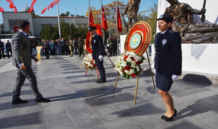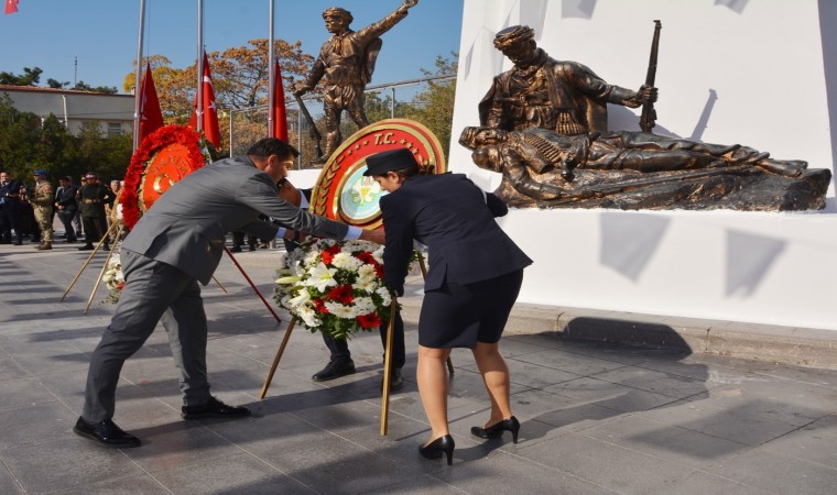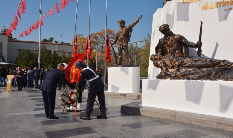 Manisa Valisi Vahdettin Özkan, Garnizon Komutanı 1’inci Komando Eğitim Tugay Komutanı Piyade Albay Cengiz Güven ve Manisa Büyükşehir Belediye Başkanı Ferdi Zeyrek tarafından anıta çelenk sunuldu.