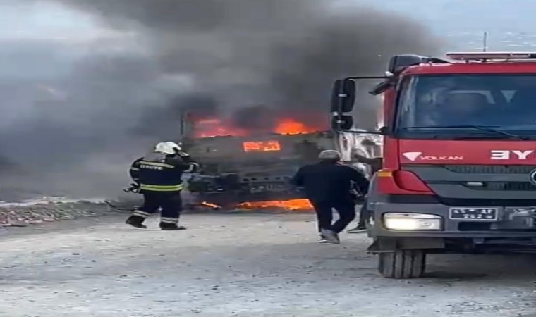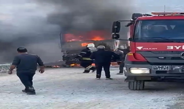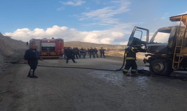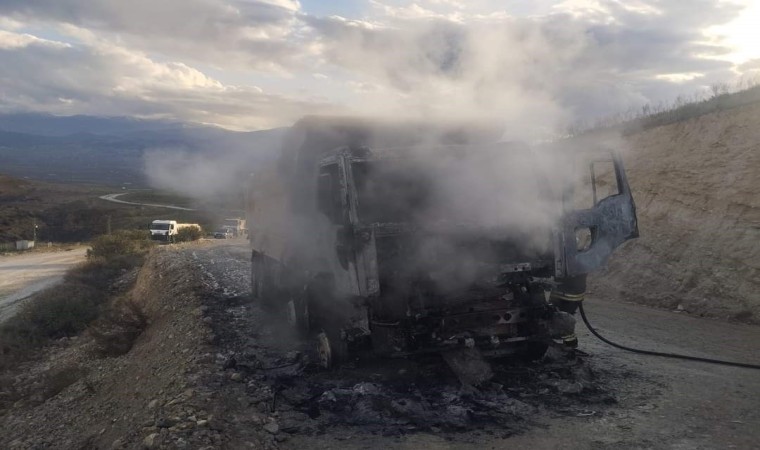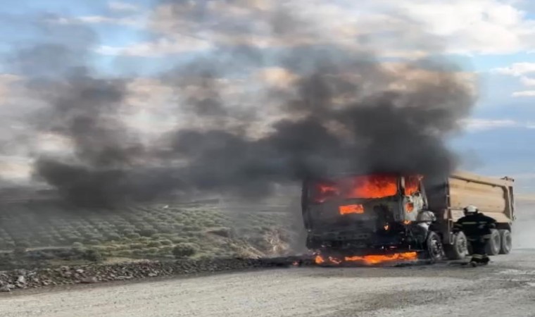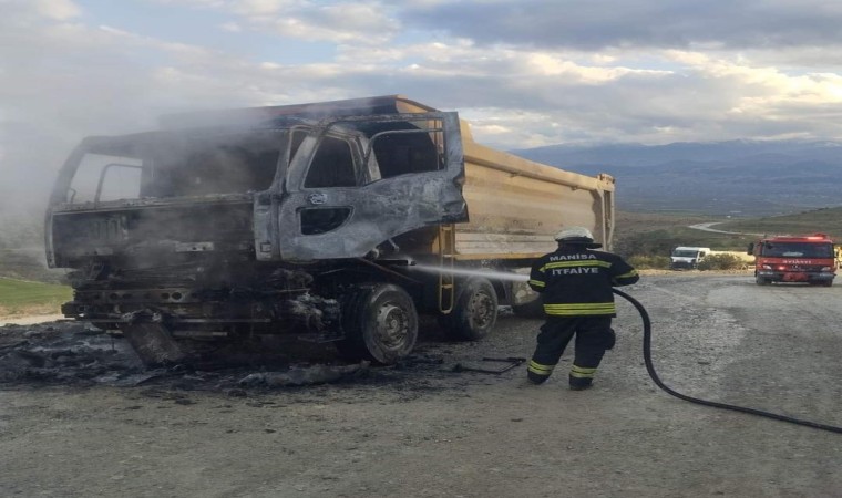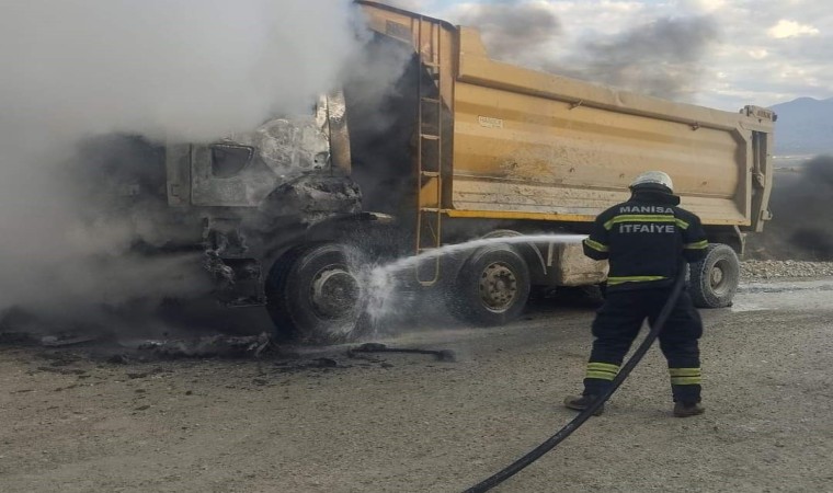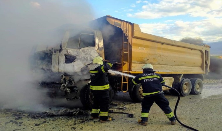 Manisa’nın Alaşehir ilçesinde seyir halindeki damperli kamyon bir anda alev alarak yanmaya başladı. Yangın, itfaiye ekipleri tarafından söndürüldü.