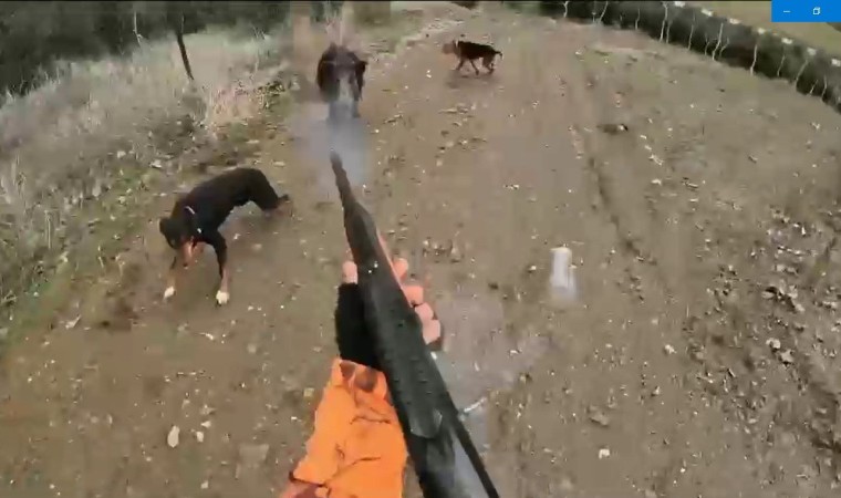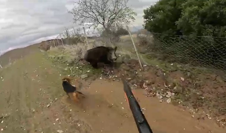 Manisa’nın Salihli ilçesinde avlanan bir kişiye yaban domuzu saldırdı. Saldırı anı avcı tarafından anbean görüntülendi.