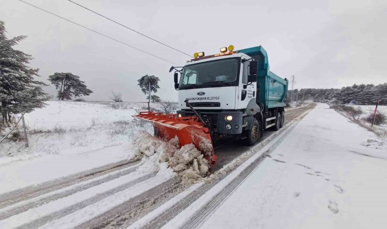 Kar yağışının etkili olduğu bölgelerde vatandaşların mağduriyet yaşamaması için ekiplerini hazır bulunduran Manisa Büyükşehir Belediyesi yol açma çalışmalarını hızla sürdürüyor.
