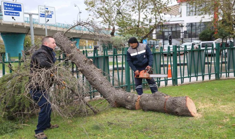 Manisa’nın Şehzadeler ilçesinde dün gece meydana gelen şiddetli rüzgar, birçok ağacın devrilmesine neden oldu. Şehzadeler Belediyesi Park ve Bahçeler Müdürlüğü ekipleri, olay yerine hızla müdahale ederek devrilen ağaçları kaldırdı.