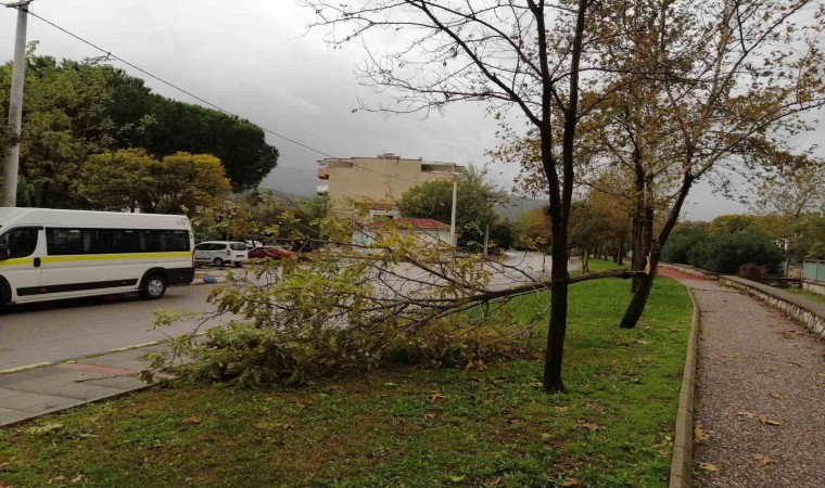 Manisa’da perşembe gününde kadar etkisini sürdürmesi beklenen kuvvetli fırtına ve sağanak yağış devam ediyor. Dün akşam saatlerinde başlayan kuvvetli fırtına nedeniyle Manisa’nın merkez ilçelerinden Yunusemre’de çok sayıda ağaç devrilirken büyük ağaçların dalları kırıldı. Aylardır su akmayan dereler suyla dolarken devrilen ve kırılan ağaçlar Yunusemre Belediyesi ekipleri tarafından kaldırılmaya başlandı.