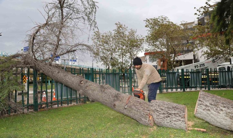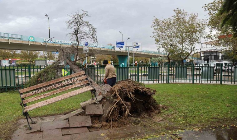 Şehzadeler’de de ağaçlar devrildi.