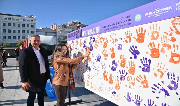 Manisa Büyükşehir Belediyesi Sosyal Hizmetler Dairesi Başkanlığı tarafından Cumhuriyet Meydanı’na yerleştirilen pano, düzenlenen el boyama etkinliği ile rengarenk hale getirildi. Bu etkinlikle kadına yönelik şiddetle mücadelede dayanışma mesajı vermek amaçlandı. Vatandaşlara, etkinlik sonunda Büyükşehir Belediyesi tarafından pilav ikram edildi.