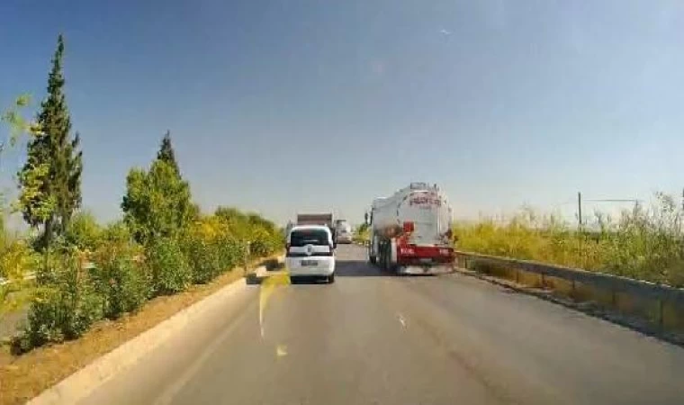 Olay, dün saat 11.00 sıralarında İzmir- İstanbul otoyolu Akhisar ilçesi bölümünde meydana geldi. 35 ACJ 644 plakalı hafif ticari aracın sürücü, Manisa'dan Akhisar yönüne seyir halindeyken tehlikeli şekilde şerit değiştirip, makas atarak, bir kamyon ve yakıt tankeri arasından geçti. O anlar arkadan gelen bir otomobilin araç kamerası tarafından görüntülendi. Araçtakiler, tehlikeli şekilde şerit değiştiren ve makas atan hafif ticari otomobilin sürücüsüne tepki gösterdi. (DHA)